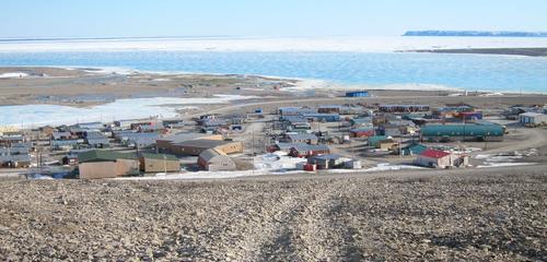 This afternoon in Resolute, Some fair-weather cumulus clouds. Warning: icy conditions likely.